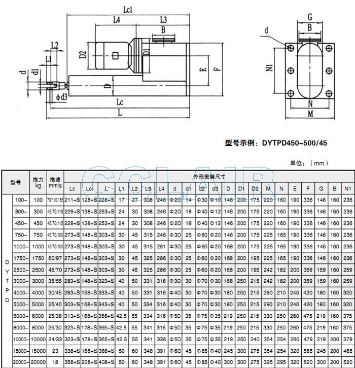 DYTPX100,DYTPX300,DYTPX450,DYTPX750,DYTPX1000,DYTPX1750,DYTPX2500,DYTPX3000,電液推桿