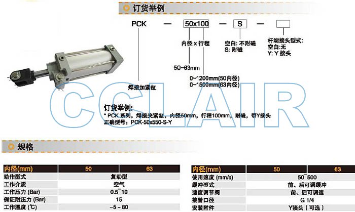 PCK-50X100-S,PCK-63X100-S,PCK-50X550-S,PCK-63X550-S,焊接夾緊缸 |