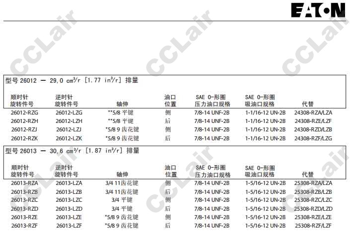 26010-RZE,26010-LZE,26010-RZF,威格士-Vickers26010-LZF,26011-RZA,26011-LZA,26011-RZB,26011-LZB,B