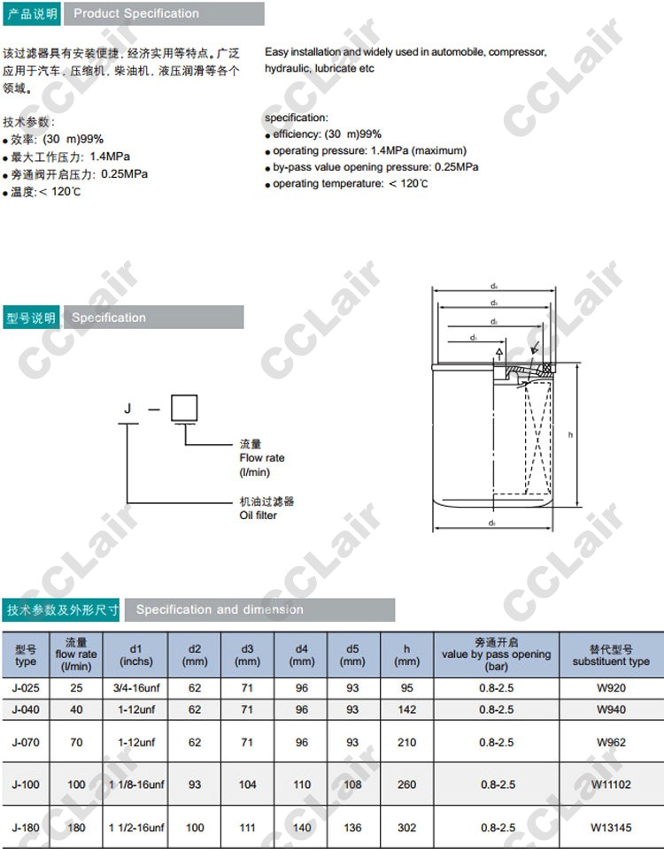 J-025,J-040,J-070,J-100,J-180,旋轉(zhuǎn)式機(jī)油過濾器