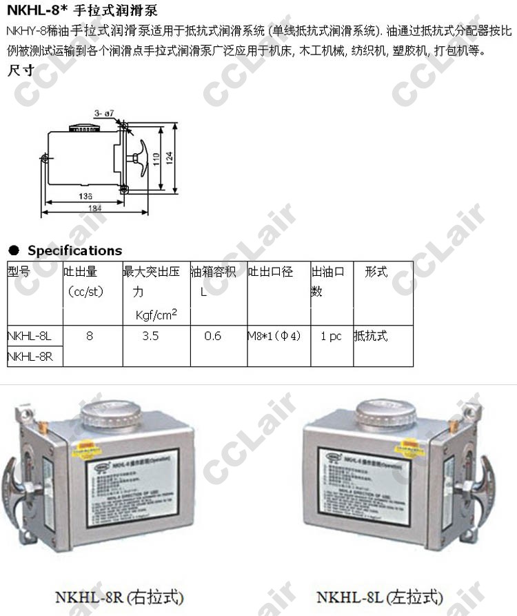 NKHL-8L,NKHL-8R,手拉式潤滑泵