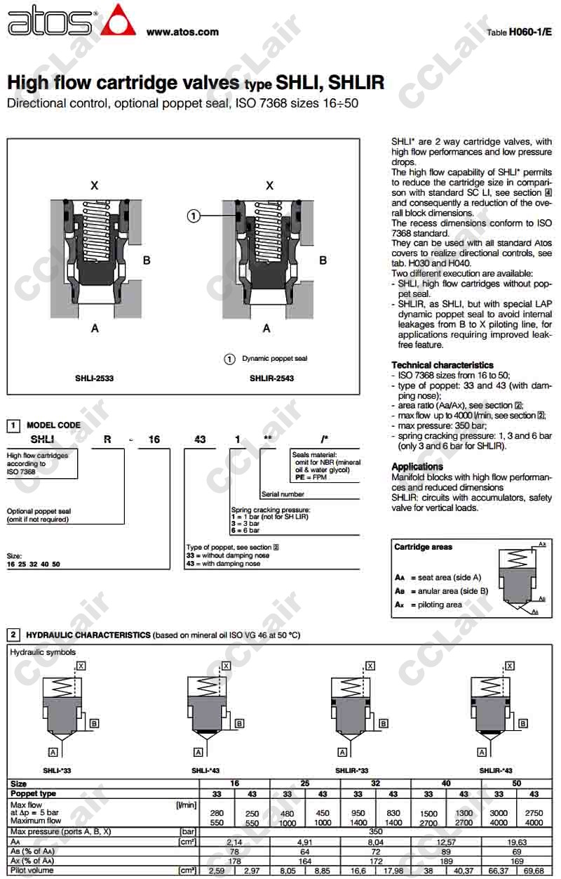 SHLIR-16,SHLIR-25,SHLIR-32,SHLIR-40,SHLIR-50,SHLIR-16333,SHLIR-50436,SHLIR-40433,阿托斯ATOS兩通大流量插裝閥