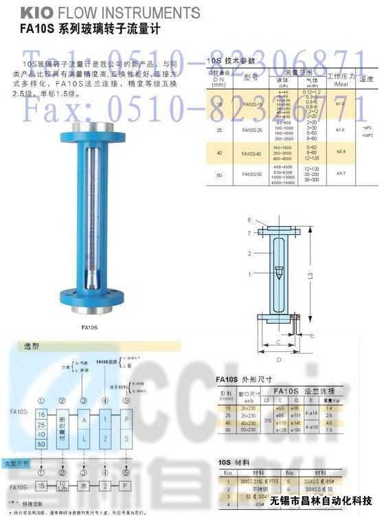FA10S-15,FA10S-25,FA10S-40,FA10S-50,玻璃轉子流量計