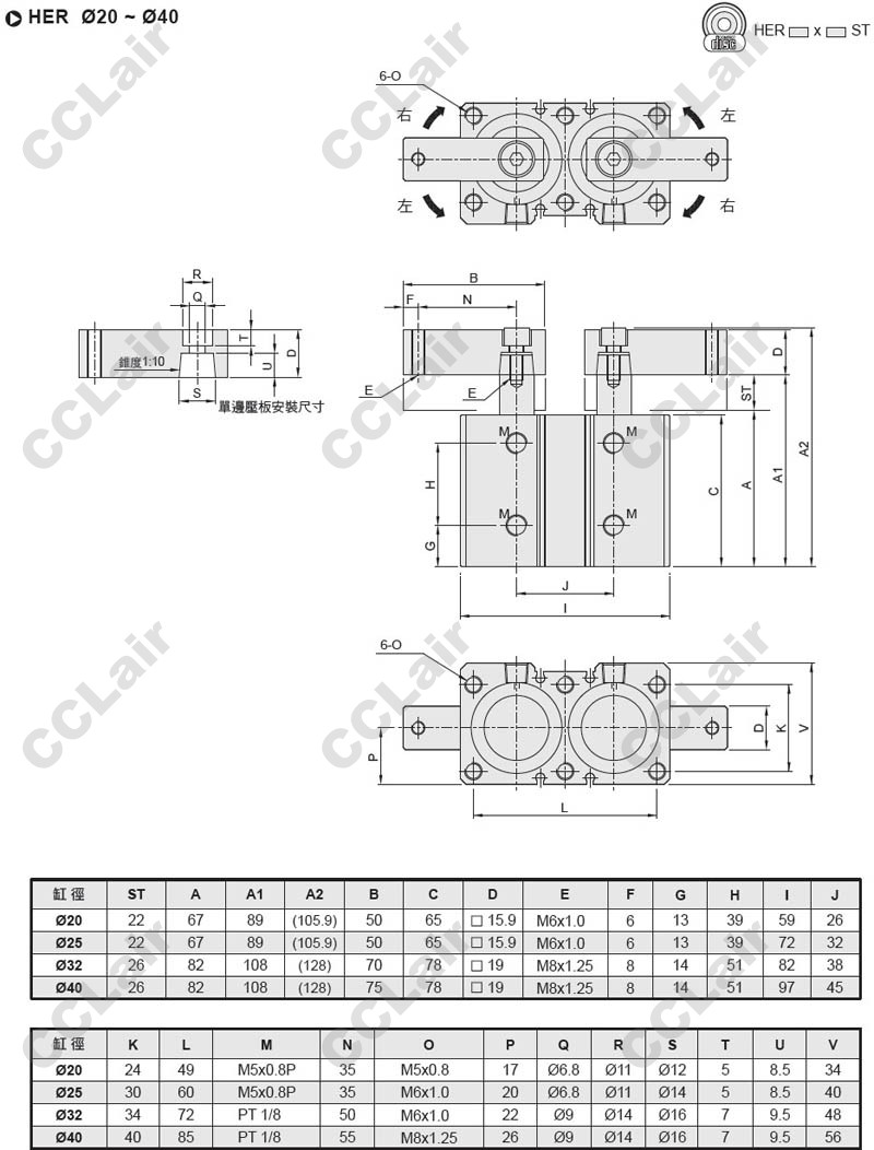 HER25*13-SD2,HER32*15-SD2,HER40*15-SD2,HER20*13-SB2,HER32*15-SB2,HER40*15-SB2,雙軸旋轉(zhuǎn)夾持氣缸