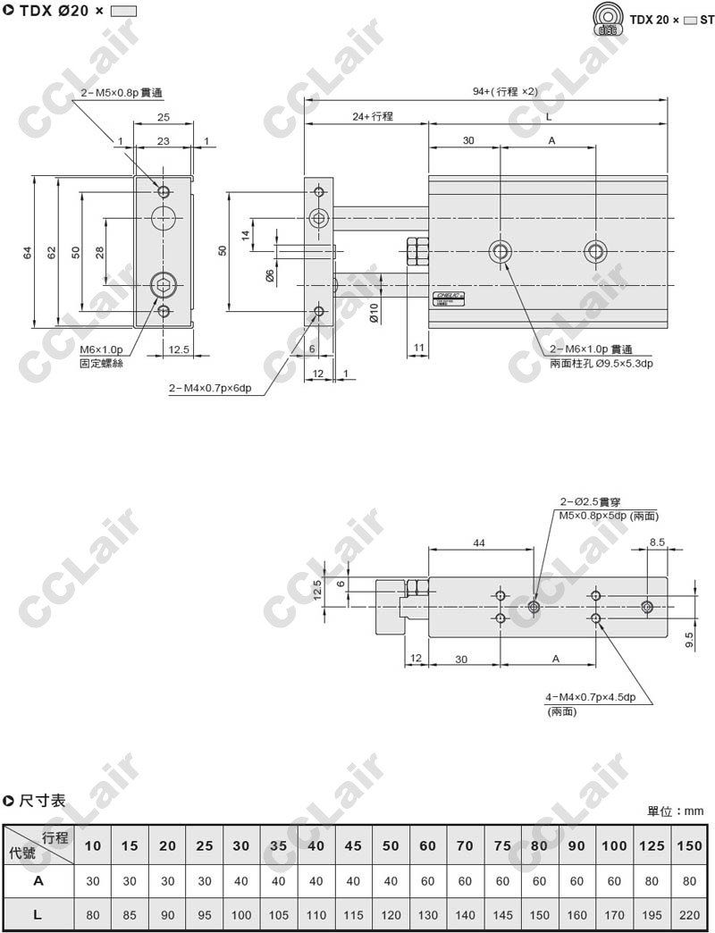 TDX20*50-ST1,TDX20*60-ST1,TDX20*70-ST1,TDX20*75-ST1,TDX20*80-ST1,TDX20*90-ST1,TDX20*100-ST1,TDX20*125-ST1,TDX20*150-ST1,