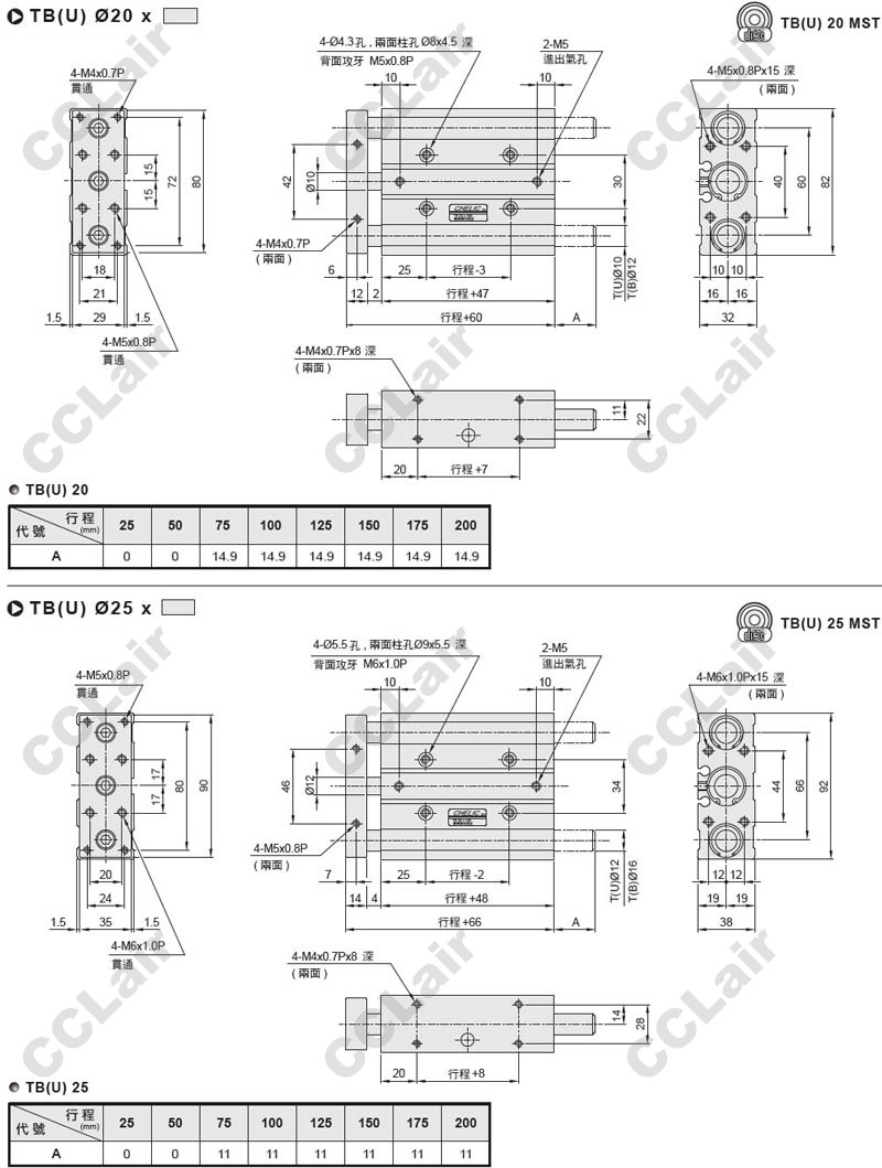 TRBL10*25-SE2,TRBL10*50-SE2,TRBL10*75-SE2,TRBL10*100-SE2,導桿薄型氣缸