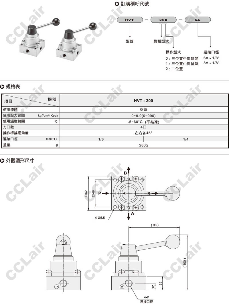 氣立可(chelic),HVT-200-6A,HVT-201-6A,HVT-202-6A,HVT-200-8A,HVT-201-8A,HVT-202-8A,小型手動閥 |