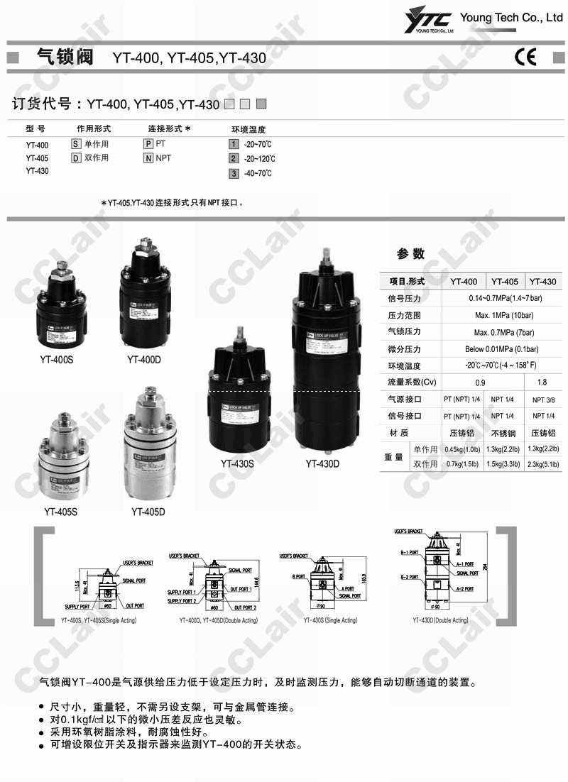 YT-400,YT-405,YT-430,YT-400S,YT-400D,YT-405D,YT-405S,YT-430S,YT-430D,YTC氣鎖閥