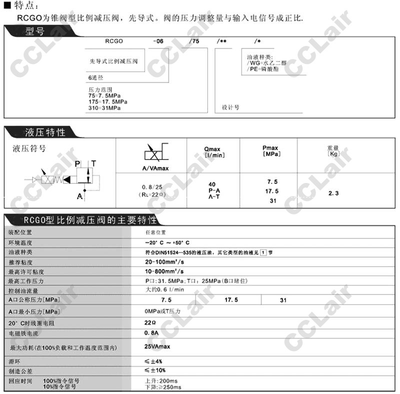 RCGO-06/75,RCGO-06/175,RCGO-06/310,比例減壓閥