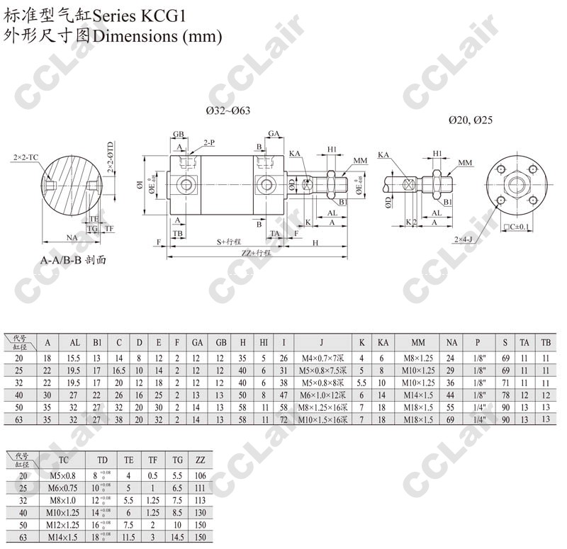 KCG1TN50-300,KCG1TN63-250,CCLair KCG1TN63-300,KCG1DN50-300,KCG1DN63-250,KCG1DN63-300,KCG1BN63-300,