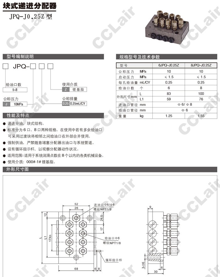 6JPQ-J0.25Z,8JPQ-J0.25Z,塊式遞進分配器