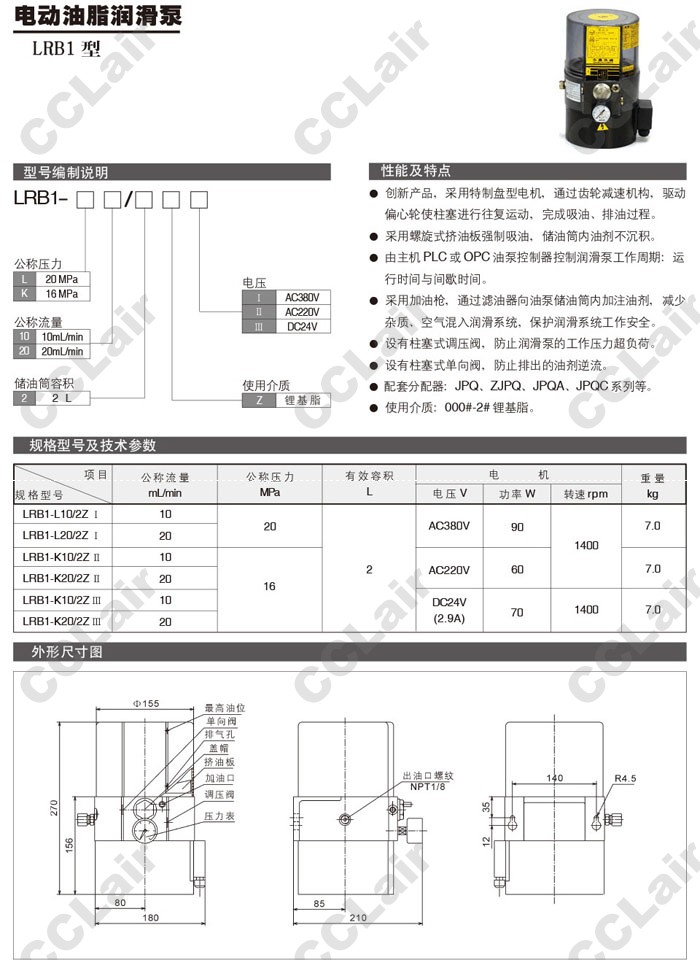 LRB1-L10,LRB1-L20,LRB1-K10,LRB1-K20,LRB1-L10/2ZI,LRB1-L20/2ZI,LRB1-K20/2ZIII,電動油脂潤滑泵 |