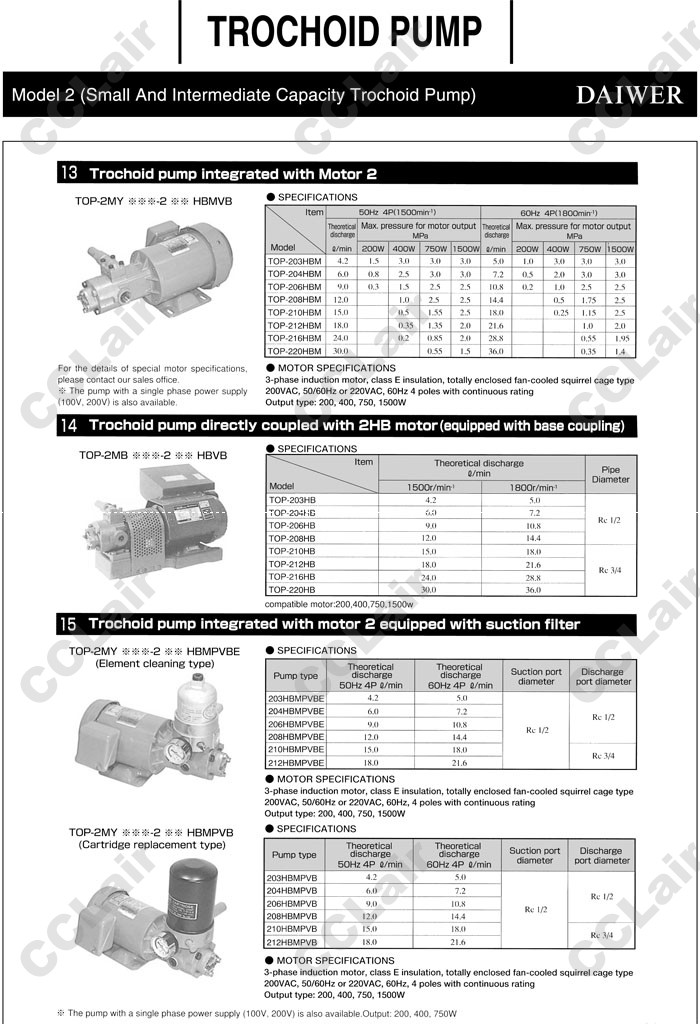 TOP-203HB,TOP-204HB,TOP-206HB,TOP-208HB,TOP-210HB,TOP-212HB,TOP-216HB,TOP-220HB,DAIWER次擺線泵 |