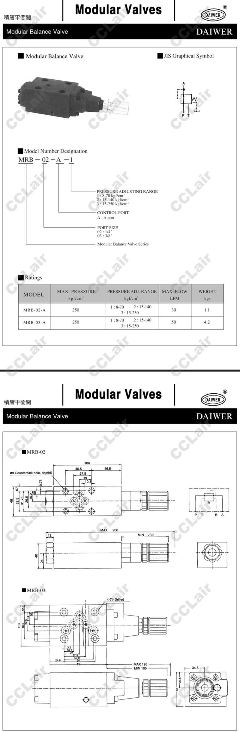 MRB-02-1,MRB-02-2,MRB-02-3,MRB-03-1,MRB-03-2,MRB-03-3,DAIWER積層平衡閥 |