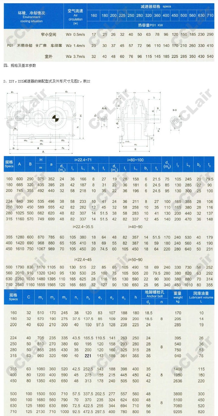 因此:Pc=P1·KA·Ks·KR=300×1.25×1×1.6=600(kW)查表9,ZDY型規(guī)格為355齒輪箱的公稱(chēng)功率PA=738kW>Pc,