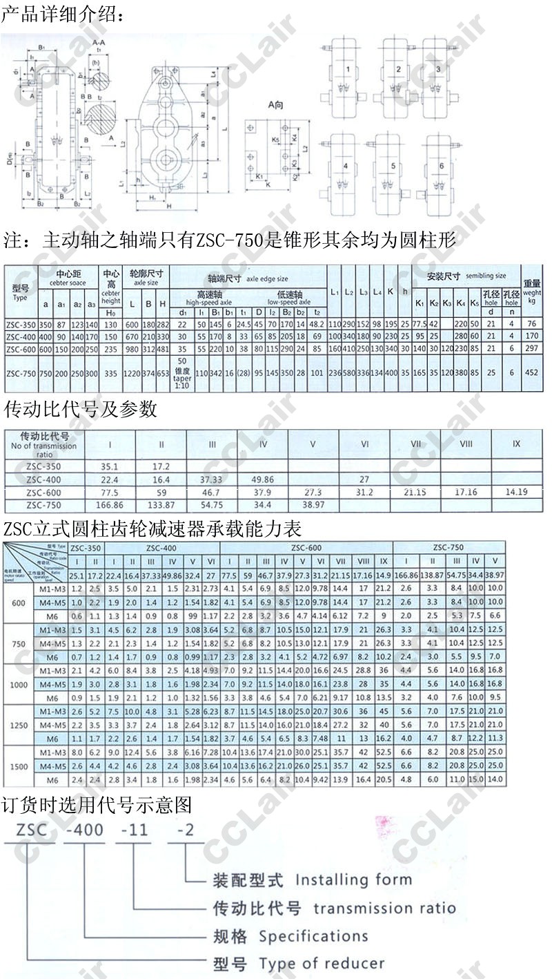 ZSC-350,ZSC-400,ZSC-600,ZSC-750,ZSL-350,ZSL-400,ZSL-600,ZSL-750,立式圓柱齒輪減速機(jī)