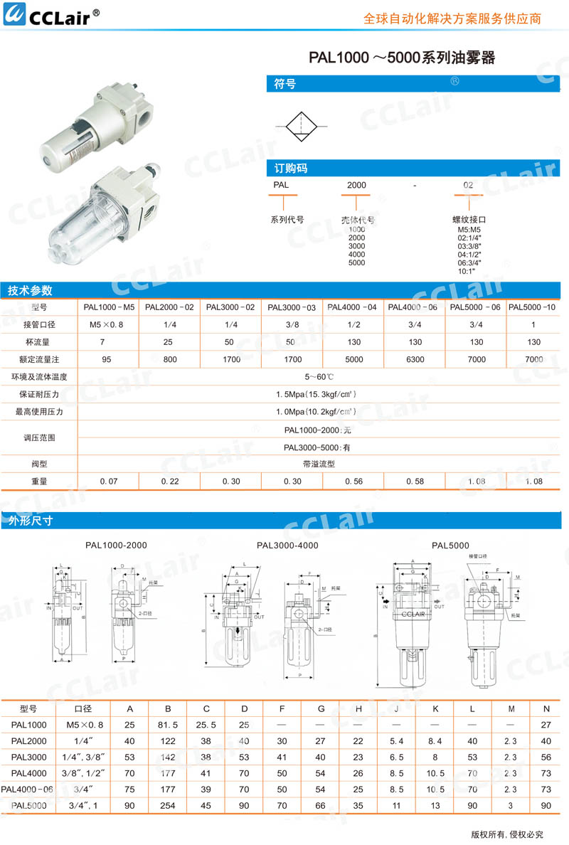 PAL1000-M5,PAL2000-02,PAL3000-02,PAL3000-03,PAL4000-04,PAL4000-06,PAL5000-06,PAL5000-10,油霧器