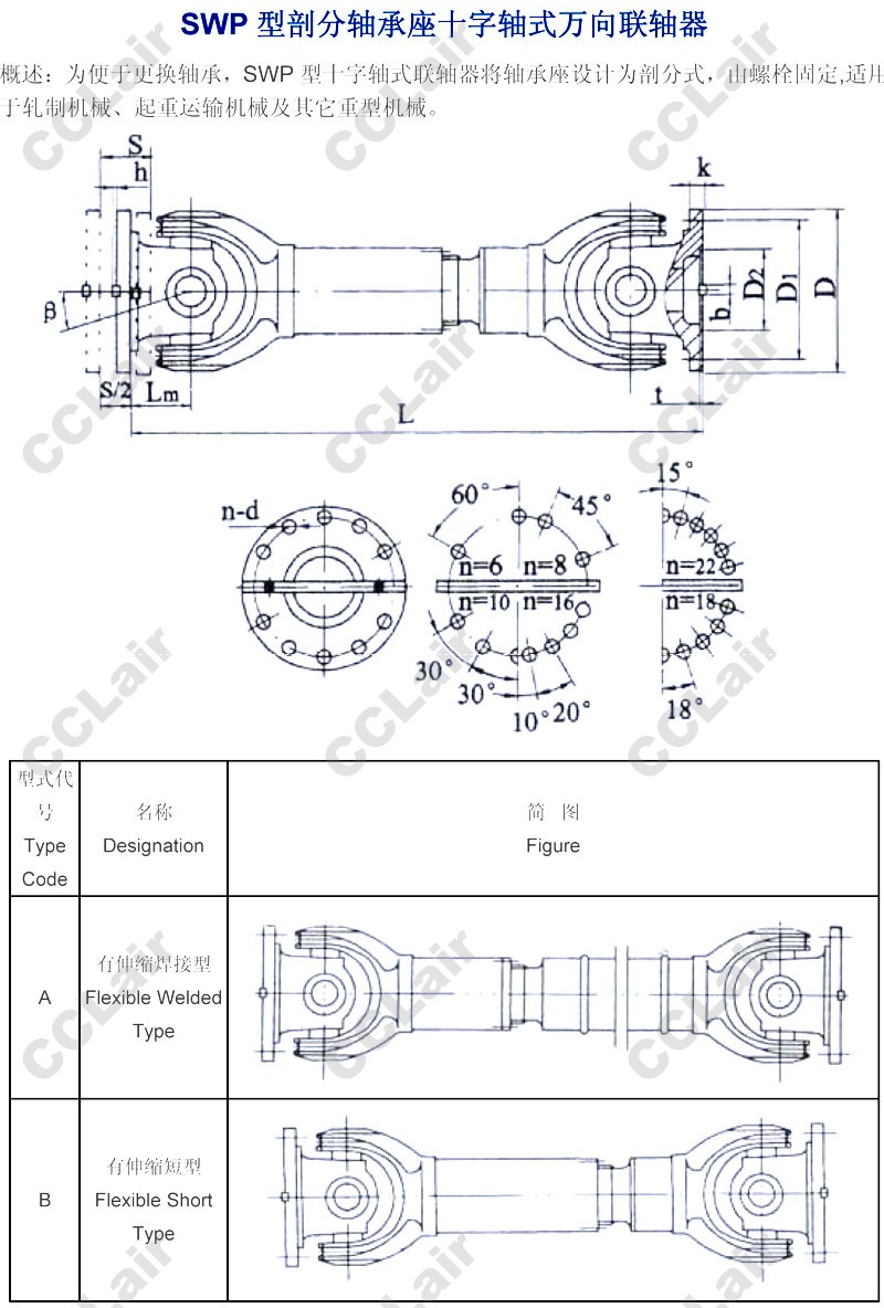 SWP160,SWP200,SWP225,SWP285,SWP315,SWP350,SWP390,SWP435,SWP550,輕載十字萬(wàn)向聯(lián)軸器