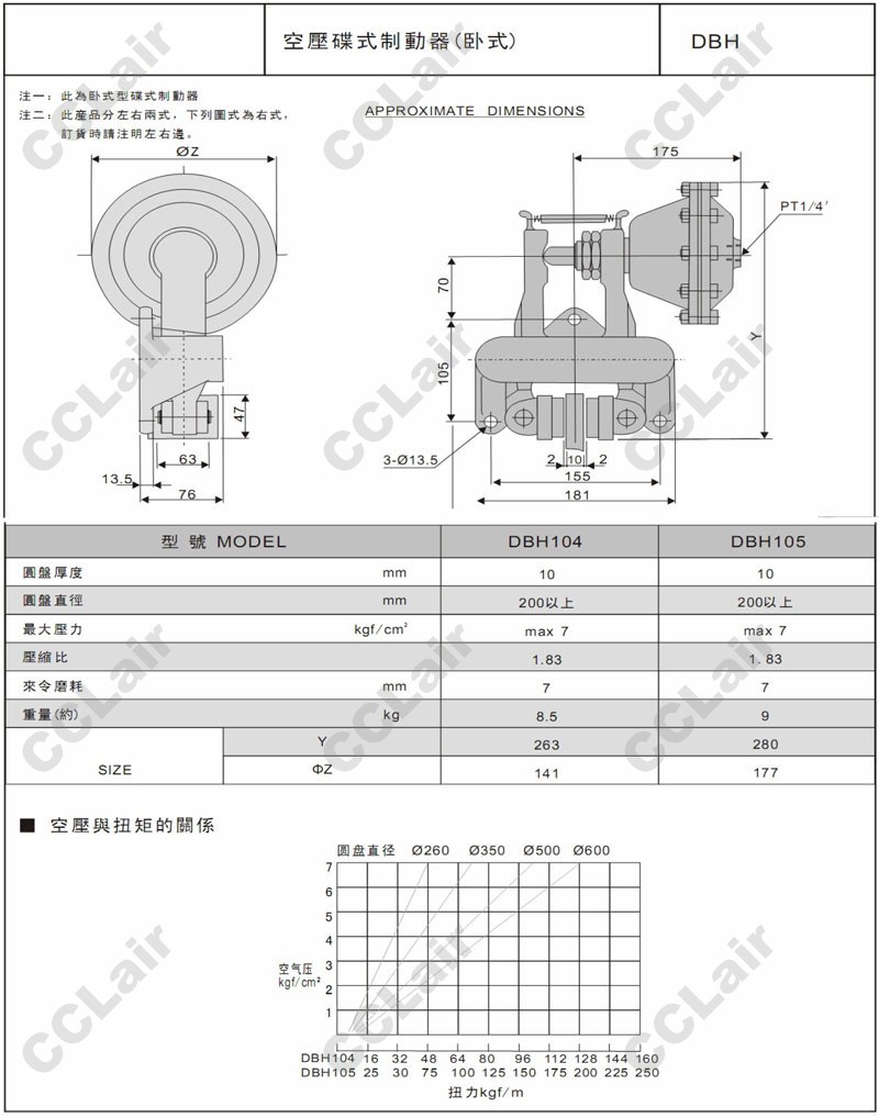 DBH104,DBH105,臥式空壓碟式制動(dòng)器