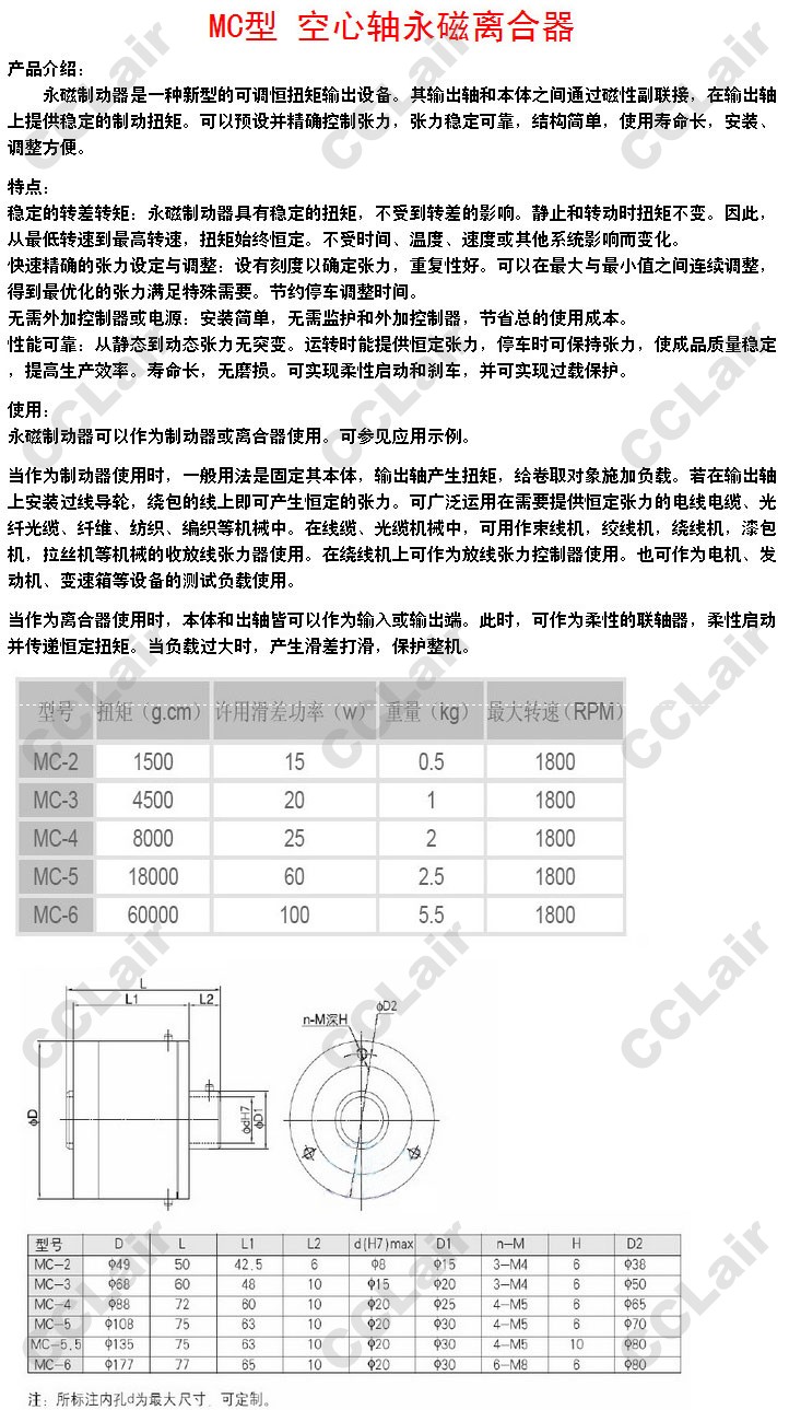 MC-2,MC-3,MC-4,MC-5,MC-5.5,MC-6,空心軸永磁離合器