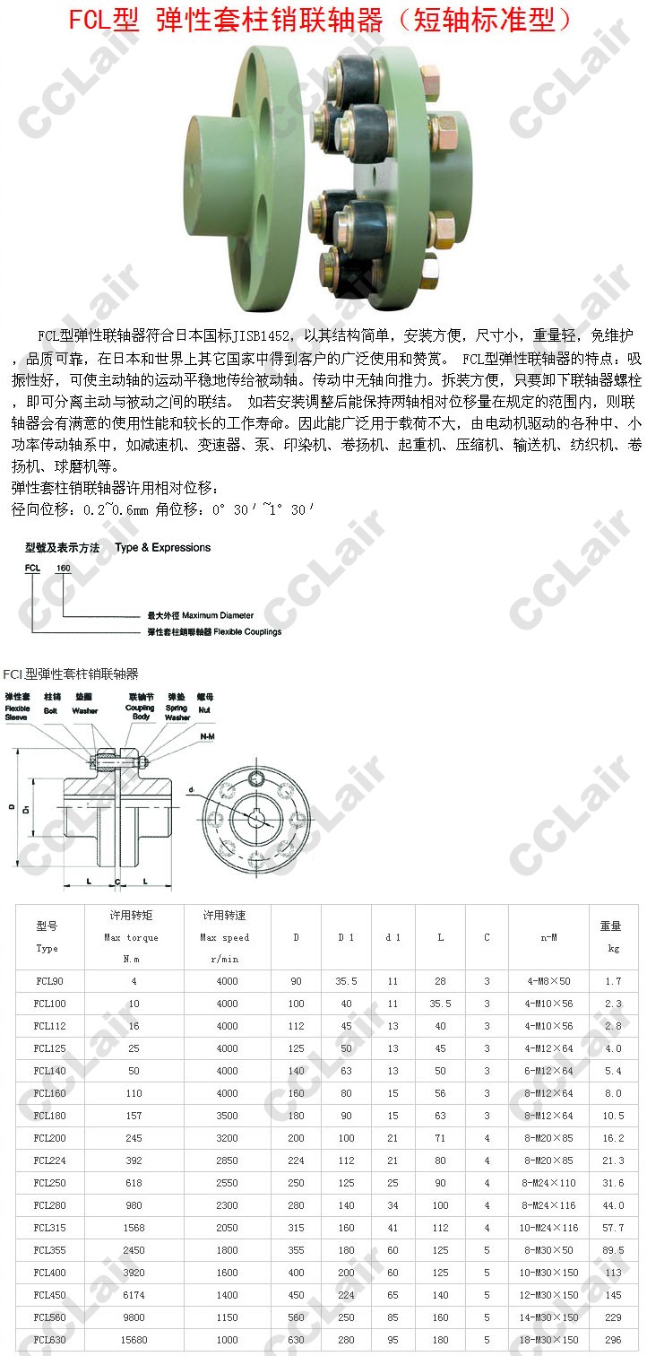 FCL90,FCL100,FCL112,FCL125,FCL200,FCL224,FCL250,FCL280,FCL315,FCL450,FCL560,FCL630,彈性套柱銷聯(lián)軸器