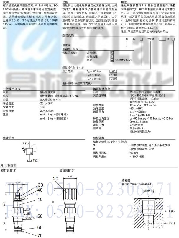 BSSPM18-63,BSDPM18-350,BSKPM18-160,BSAPM18-160,直動式壓力溢流插裝閥