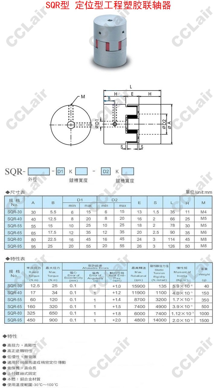 SQR-30,SQR-40,SQR-55,SQR-65,SQR-80,SQR-95,定位型工程塑膠聯(lián)軸器