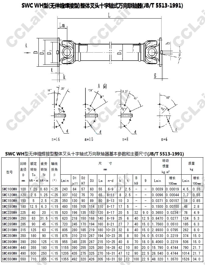SWC100WH,SWC120WH,SWC250WH,SWC315WH,SWC440WH,SWC490WH,SWC550WH,無伸縮焊接式萬向聯(lián)軸器