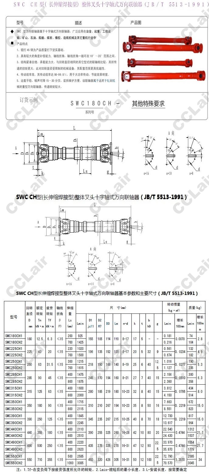 SWC180CH1,SWC225CH1,SWC250CH2,SWC285CH2,SWC315CH1,SWC390CH2,SWC440CH1,SWC550CH1,十字軸式萬向聯(lián)軸器