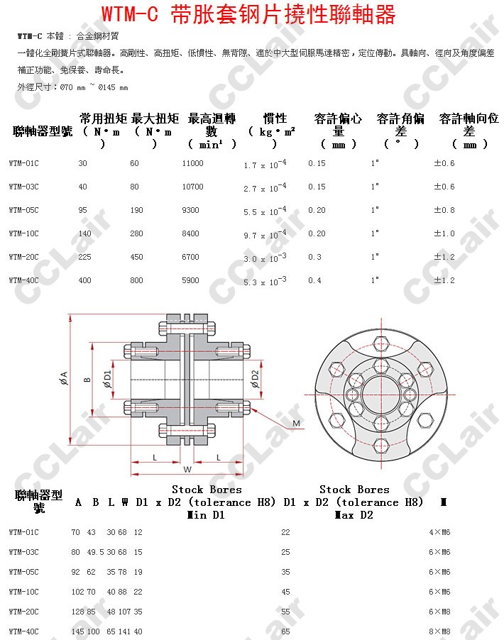 WTM-01C,WTM-03C,WTM-05C,WTM-10C,WTM-20C,WTM-40C,帶脹套鋼片撓性聯(lián)軸器