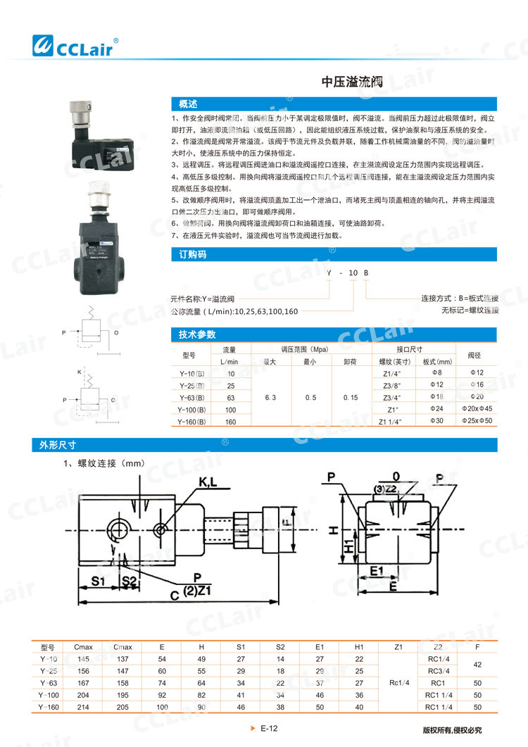 P-B10,P-B25,P-B63,P-B10B,P-B25B,P-B63B,低壓溢流閥