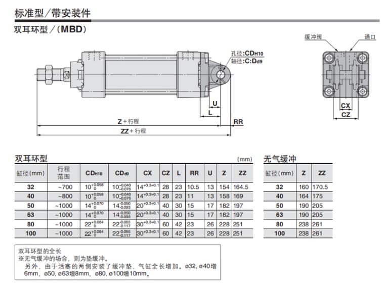 MDBT32-250,MDBT32-300,MDBT32-350,MDBT32-400,標(biāo)準(zhǔn)型氣缸,