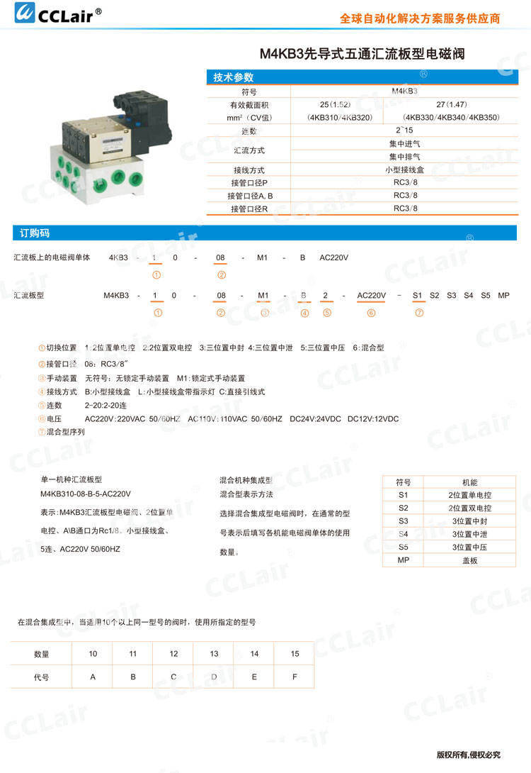 M4KB310-08,M4KB320-08,M4KB330-08,M4KB340-08,M4KB350-08,先導(dǎo)式五通匯流板型電磁閥