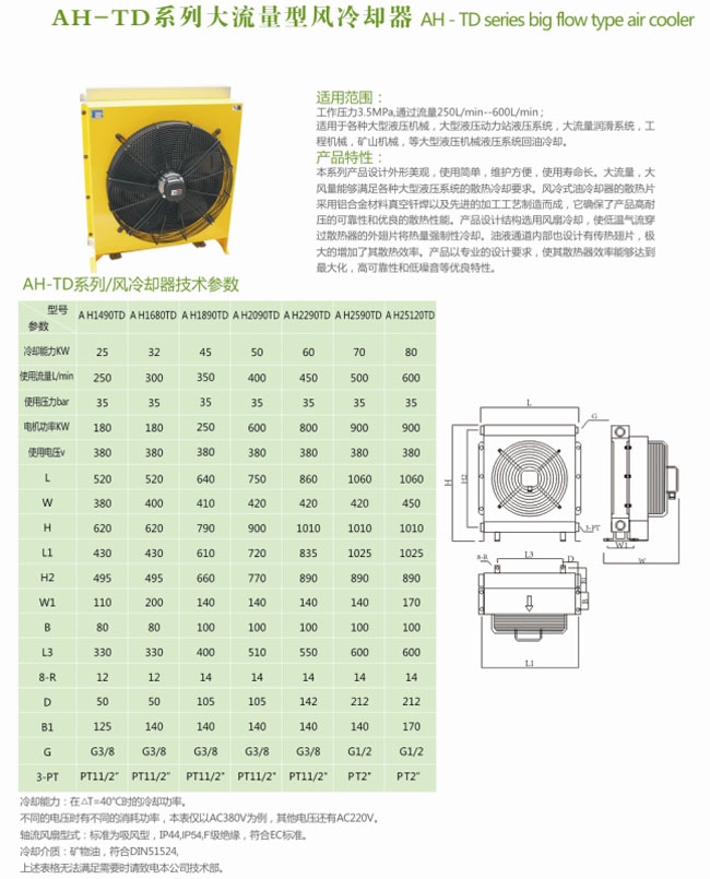AH1490TD,AH1680TD,AH1890TD,AH2090TD,AH2290TD,AH2590TD,AH25120TD,大流量型風(fēng)冷卻器