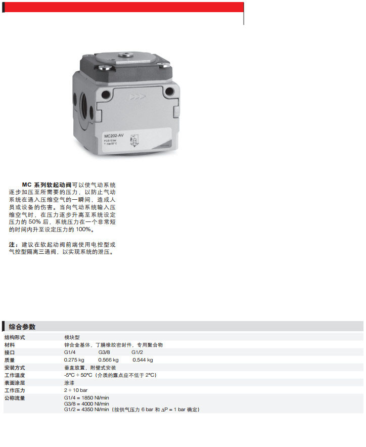 MC104-AV,MC138-AV,MC102-AV,MC204-AV,MC238-AV,camozzi軟起動閥 |
