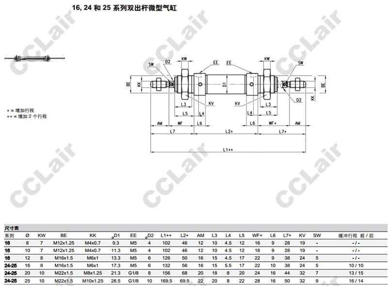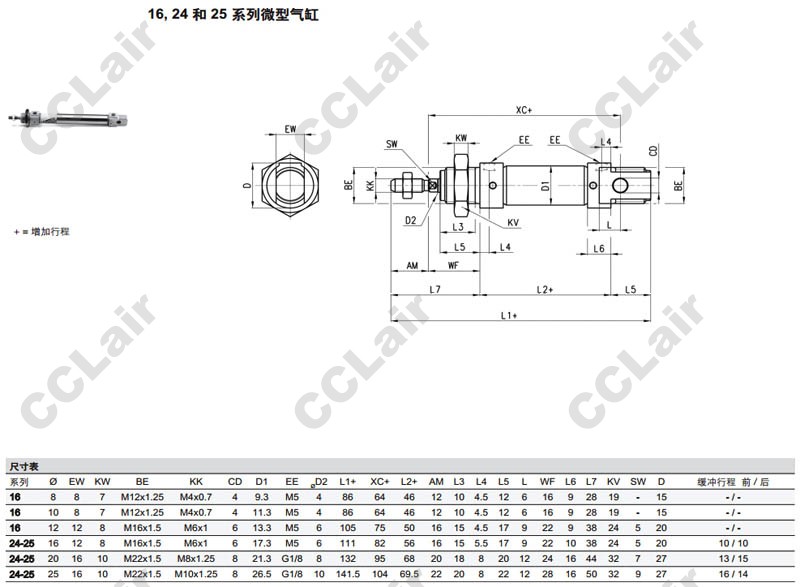 16N1A08A100,16N2A10A100,16N3A12A100,16N7A16A100,16N1A20A100,16N1A20RL100,camozzi微型氣缸