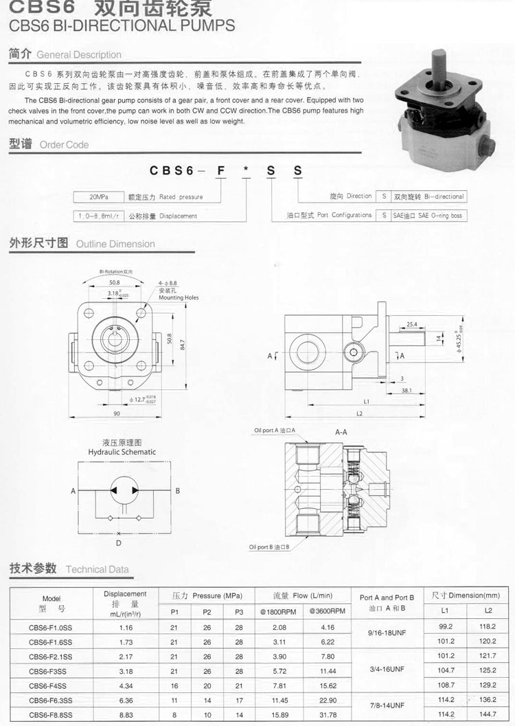 CBS6-F1.0SS,CBS6-F1.6SS,CBS6-F2.1SS,CBS6-F3SS,CBS6-F4SS,CBS6-F6.3SS,CBS6-F8.8SS,雙向齒輪泵 |