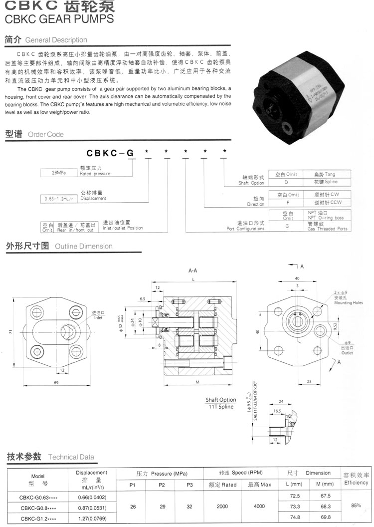 CBKC-G0.63,CBKC-G0.8,CBKC-G1.2,齒輪泵