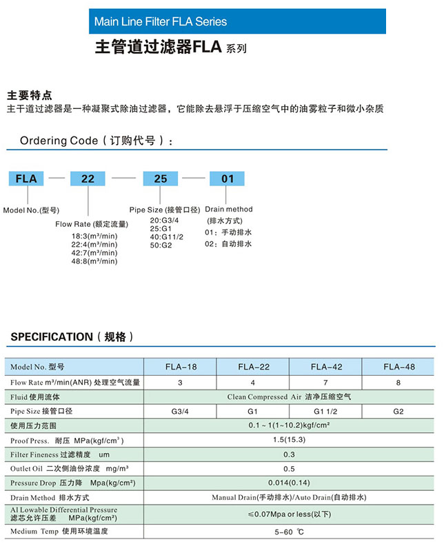 FLA-18,FLA-22,FLA-42,FLA-48,主管道過濾器