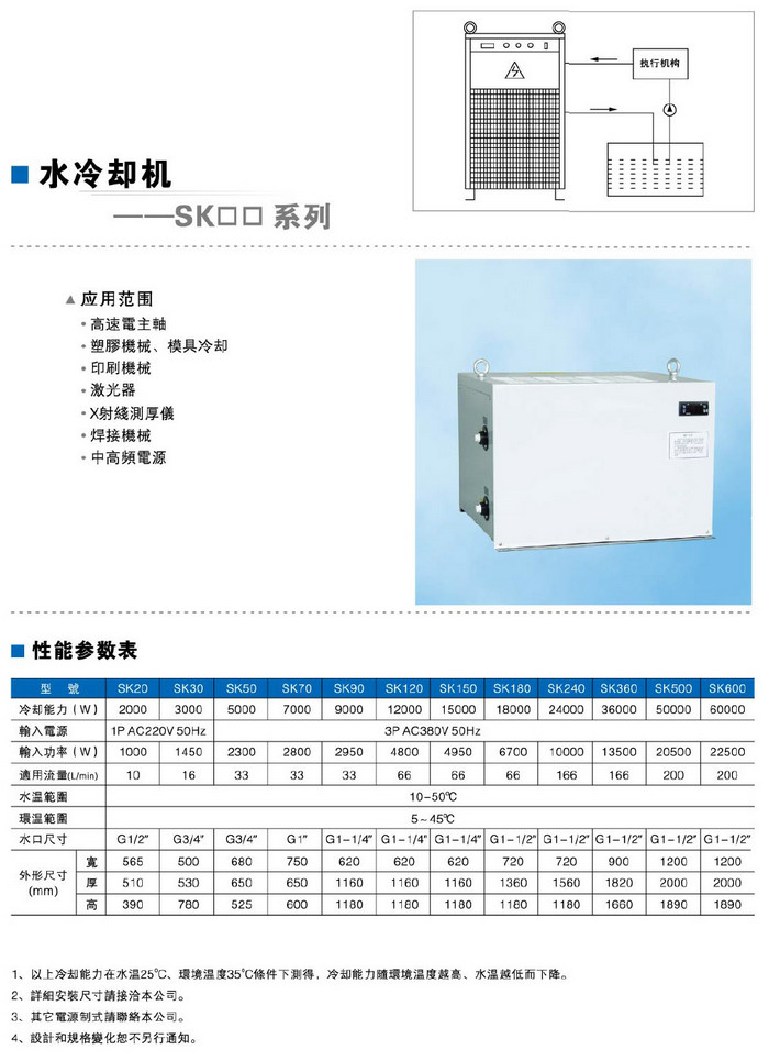 SK20,SK30,SK50,SK70,SK90,SK120,SK150,SK180,SK240,SK360,SK500,SK600,水冷卻機(jī) |