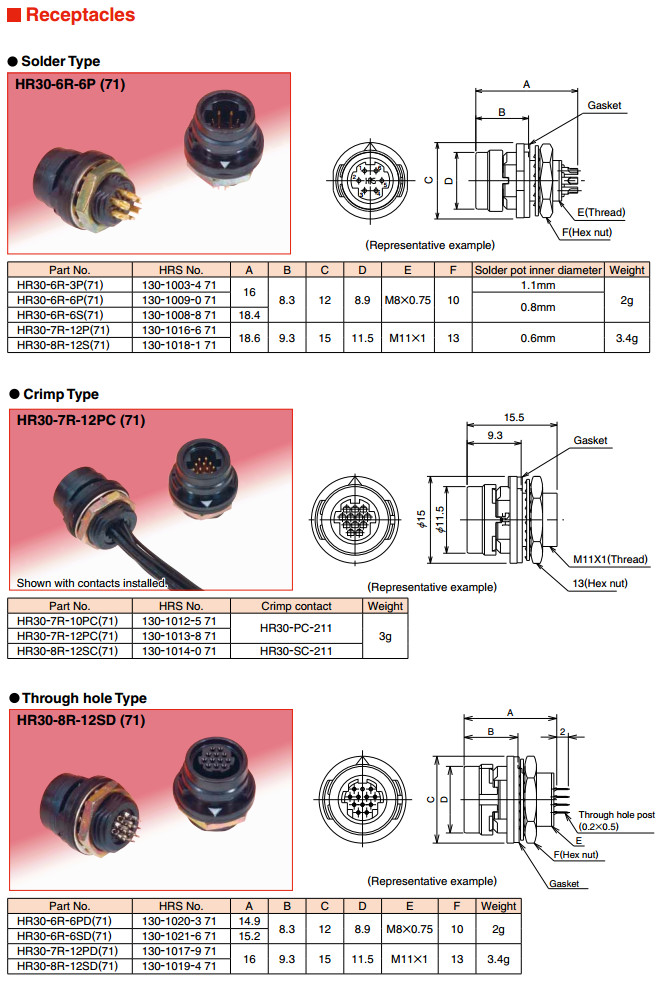 HR30-7P-10SC,HR30-7P-12SC,HR30-8P-12PC,HR30-6PB-3S,HR30-6PB-6S,HR30-6PB-6P,