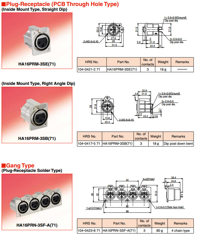 HA16PA-3S,HA216J-3P,HA16R-3P,HA16PRH-3S,HA16PRN-3SE-A,HA16PRK-3S,hirose連接器