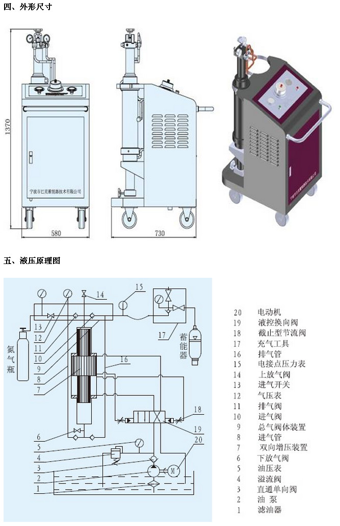 本型充氮車由液壓裝置、氣路裝置和電氣裝置等組成,當(dāng)壓力流體通過(guò)換向閥進(jìn)入增壓器時(shí),推動(dòng)活塞作向上(下)運(yùn)動(dòng),使進(jìn)入到上(下)增壓器的氮?dú)庠鰤?,且?jīng)單向閥充入蓄能器(或高壓容器)內(nèi),活塞如此上下往復(fù)運(yùn)動(dòng),使氮?dú)庠鰤旱剿枰墓ぷ鲏毫Α?/span>