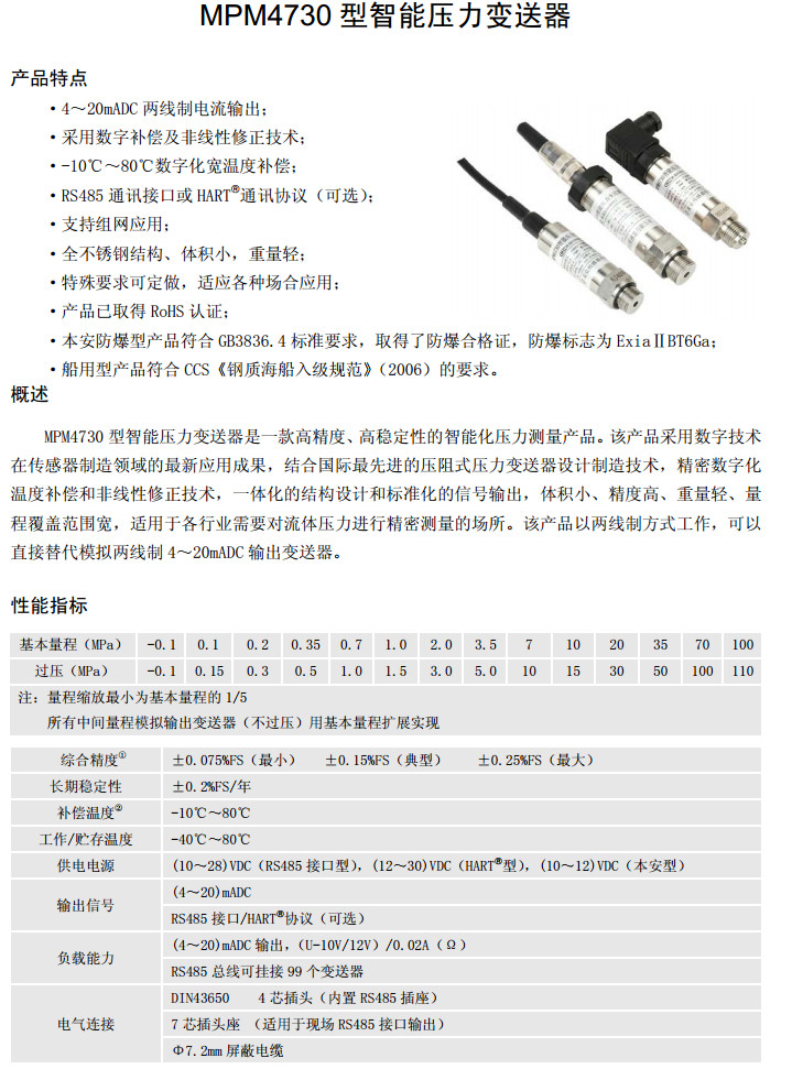 MPM4730-0.1,MPM4730-0.2,MPM4730-0.35,MPM4730-0.7,MPM4730-1.0,智能壓力變送器
