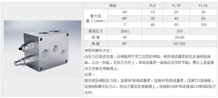 HYVABP FL6,HYVABP FL10,HYVABP FL16,法蘭式雙泵高低流量卸荷閥