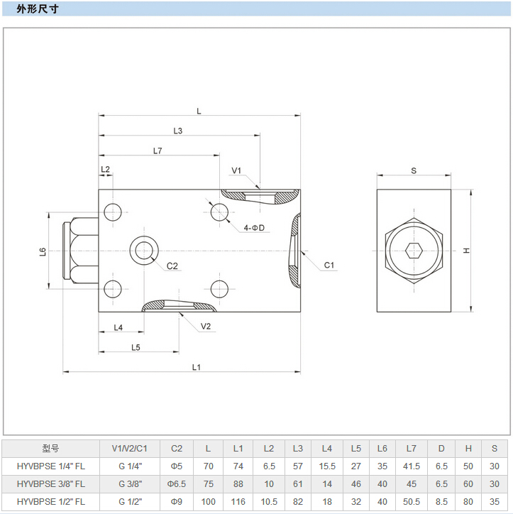 HYVBPSE 1/4" FL,HYVBPSE 3/8" FL,HYVBPSE 1/2" FL,單先導式單向閥