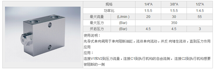 HYVBPSE 1/4"A,HYVBPSE 3/8"A,HYVBPSE 1/2"A,單先導(dǎo)式單向閥