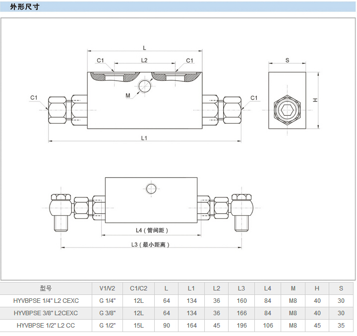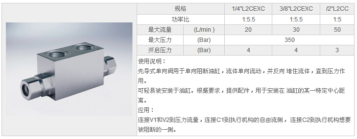 HYVBPSE 1/4" L2 CEXC,HYVBPSE 3/8" L2CEXC,HYVBPSE 1/2" L2 CC,單先導式單向閥 |