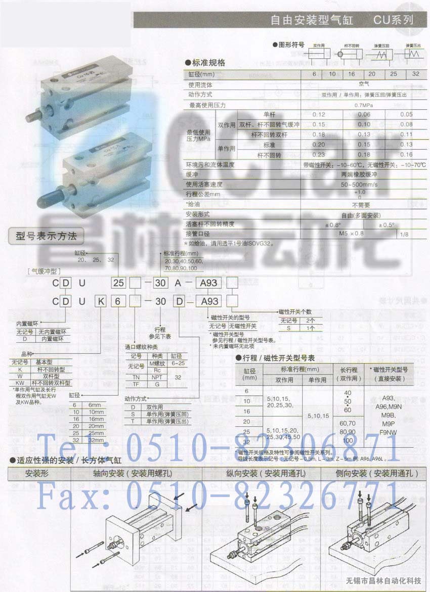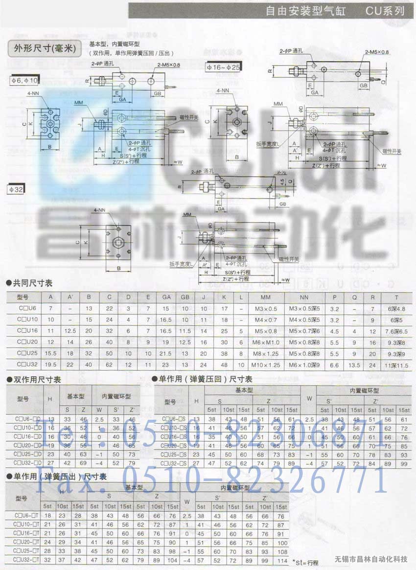 CU16-5D,CU16-10D,CU16-15D,自由安裝型氣缸