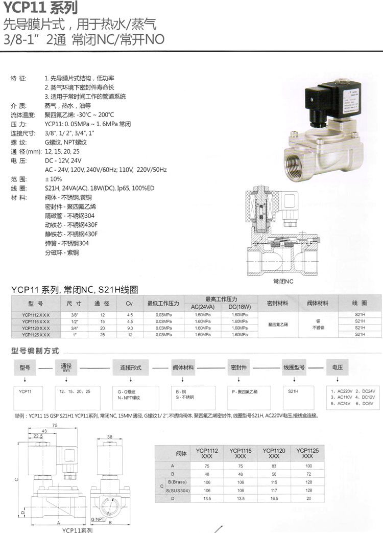 YCP1112,YCP1115,YCP1120,YCP1125,先導膜片式電磁閥